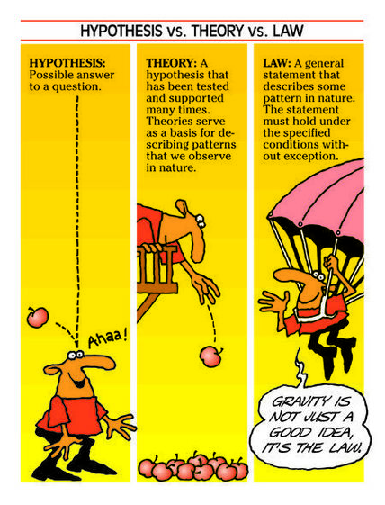 In everyday speech, people often use the word “theory” to mean a guess. In science, these terms have very specific, different meanings: