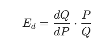 The formula for point elasticity (Ed) uses the derivative of the demand function (Q):