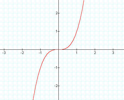 If f(x) = x3 then f'(x) = 3x2, so f'(0) = 0. But f has no maximum or minimum at 0, as shown left. (Or observe that x3 ≥ 0 for x > 0 but x3 < 0 for x < 0). The fact that f'(0) = 0 simply means that the curve y = x3 has a horizontal tangent at (0,0). Instead of having a maximum or minimum at (0,0), the curve crosses its horizontal tangent there.