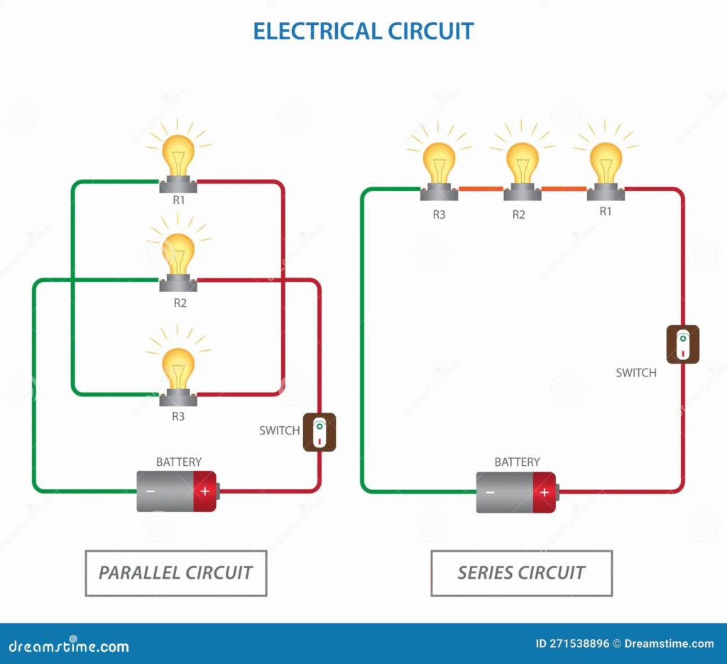 | Series | Components are connected in a single “daisy chain” loop. | The entire circuit breaks; all lights go out. |
