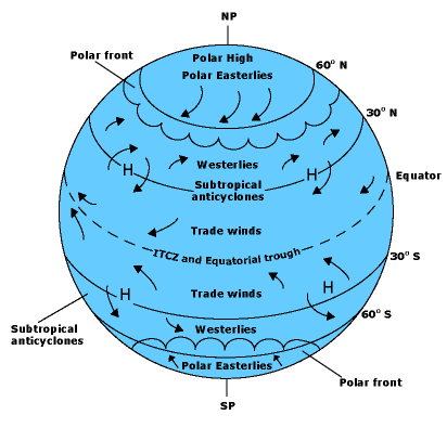 | Wind Pattern | Westerlies (West to East) | Trade Winds (East to West) |