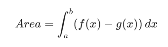 - Area Between Two Curves: If you want to find the area trapped between two functions, f(x) and g(x), you subtract the “bottom” function from the “top” function: