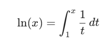 - The Natural Logarithm: ln(x) is actually defined as the area under the curve 1/t starting from 1:
