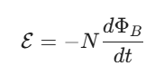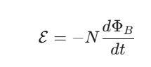 • Where ε is the induced voltage, N is the number of turns in the coil, and dΦB/dt is the rate of change of magnetic flux.
