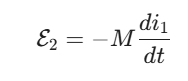 • Where ε2 is the voltage induced in the second coil, and M is the mutual inductance between them.