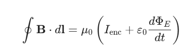 In the mid-1800s, James Clerk Maxwell realized Ampere’s Law was incomplete because it didn’t account for changing electric fields (like those found between the plates of a charging capacitor).