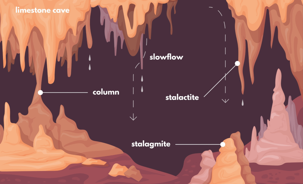 - Result: Over thousands of years, the acid eats away at the rock, creating massive underground caves, sinkholes, and unique “karst” landscapes.